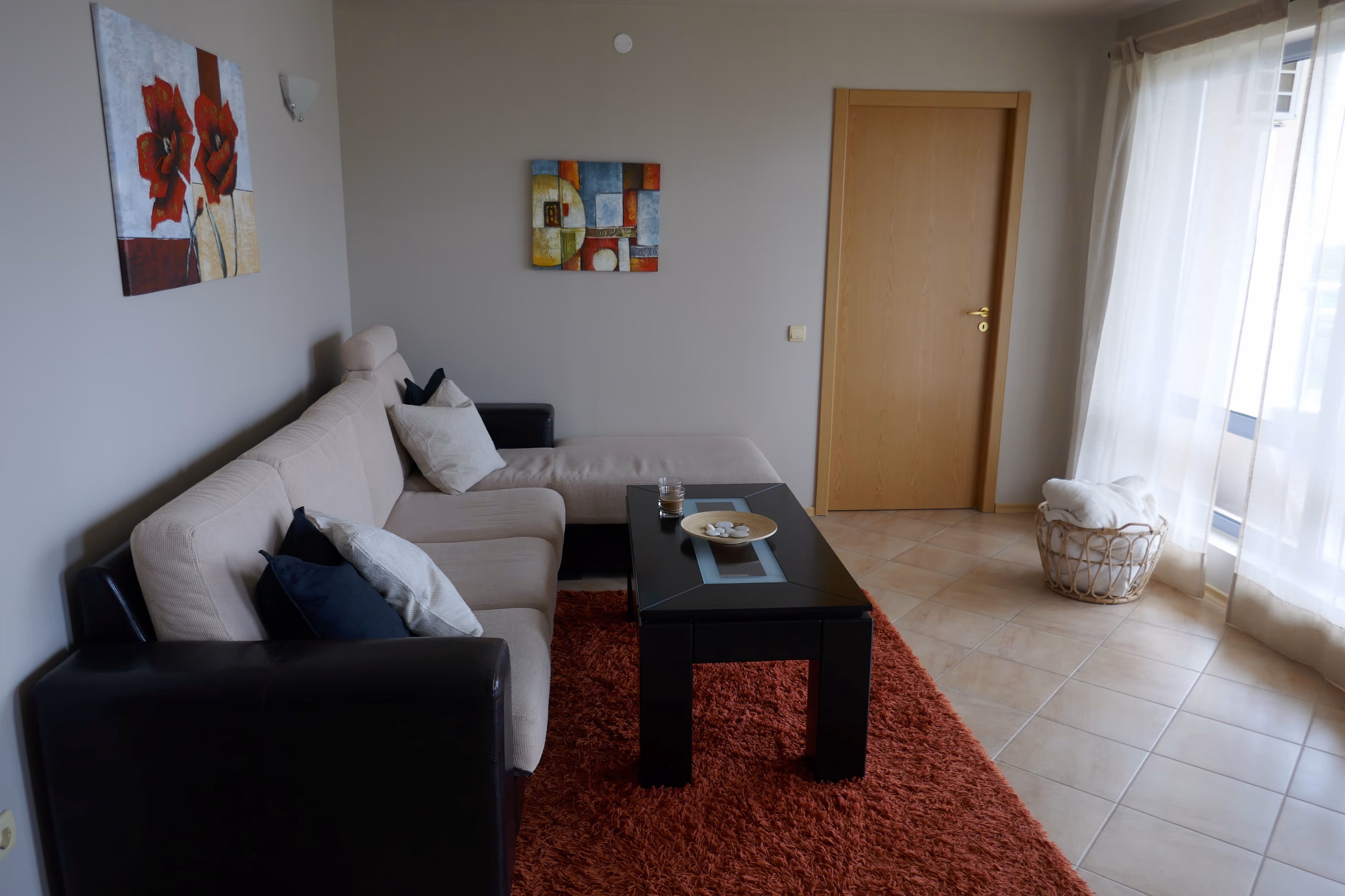 D7 er en fullt utstyrt 3-roms leilighet i plan med inngangspartiet. Leiligheten er på ca 100 m2 pluss 17 m2 terrasse med utsikt mot Svartehavet og Obzor. Leiligheten har to flislagte bad med varmekabler, to soverom med sengeplass for totalt 5 personer, pluss barneseng. Kjøkken med kjøleskap, komfyr, mikrobølgeovn, oppvaskmaskin og kaffetrakter m.m. Vaskemaskin på bad.